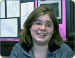 She finished secondary school and is taking a year out before going to University. She works full time and shares a house with other young people. (Played by an actor)