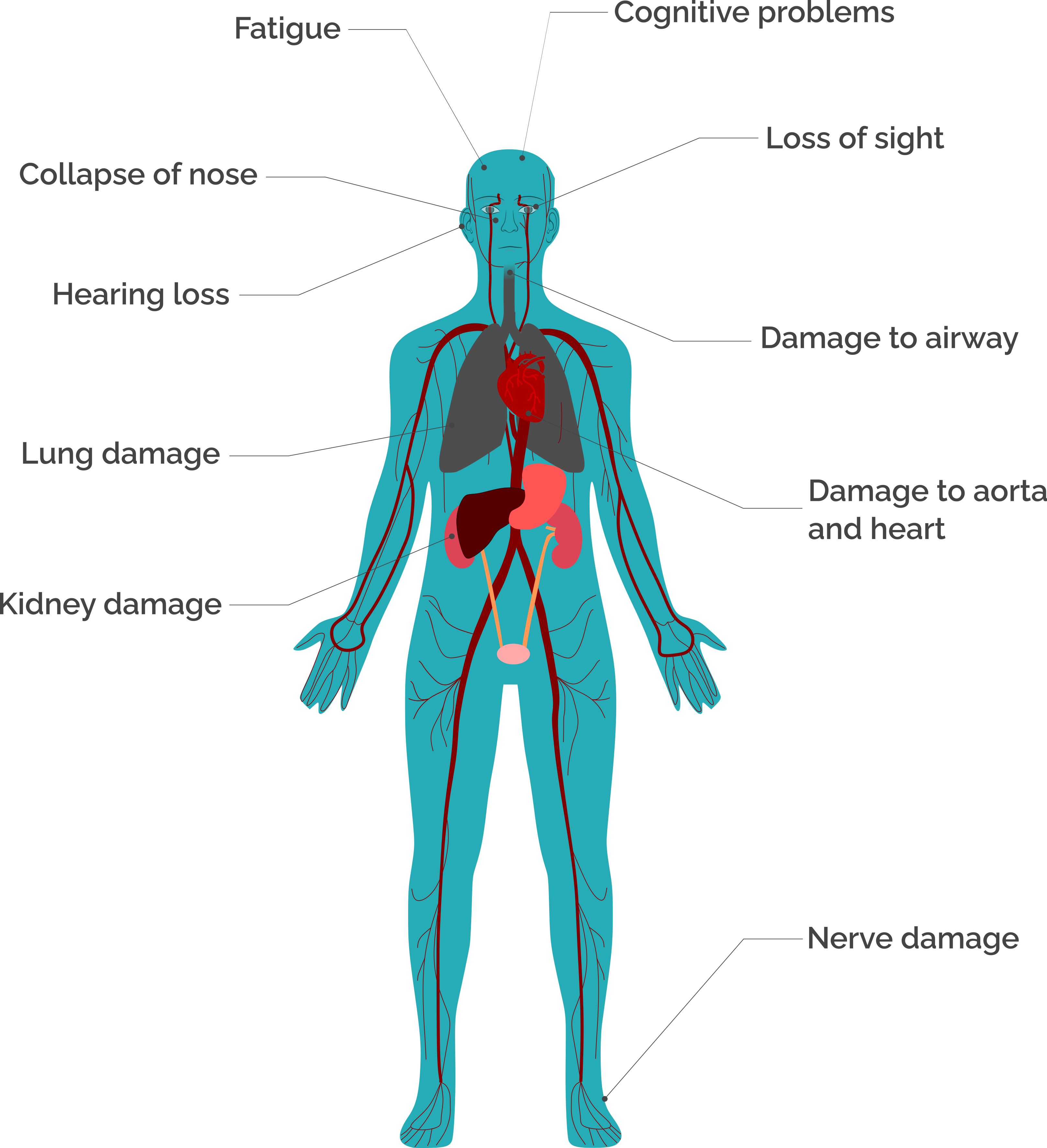 But I’ve never seen anyone face to face who’s had saddle nose deformity like mine. My nose is now beginning to collapse again, and that’s not due to disease activity that’s just, you know, it just will, they can’t hold it there forever, it will collapse but obviously they won’t do any work on the nose until it’s absolutely necessary. They can only do so much; they can’t keep on repairing it.
